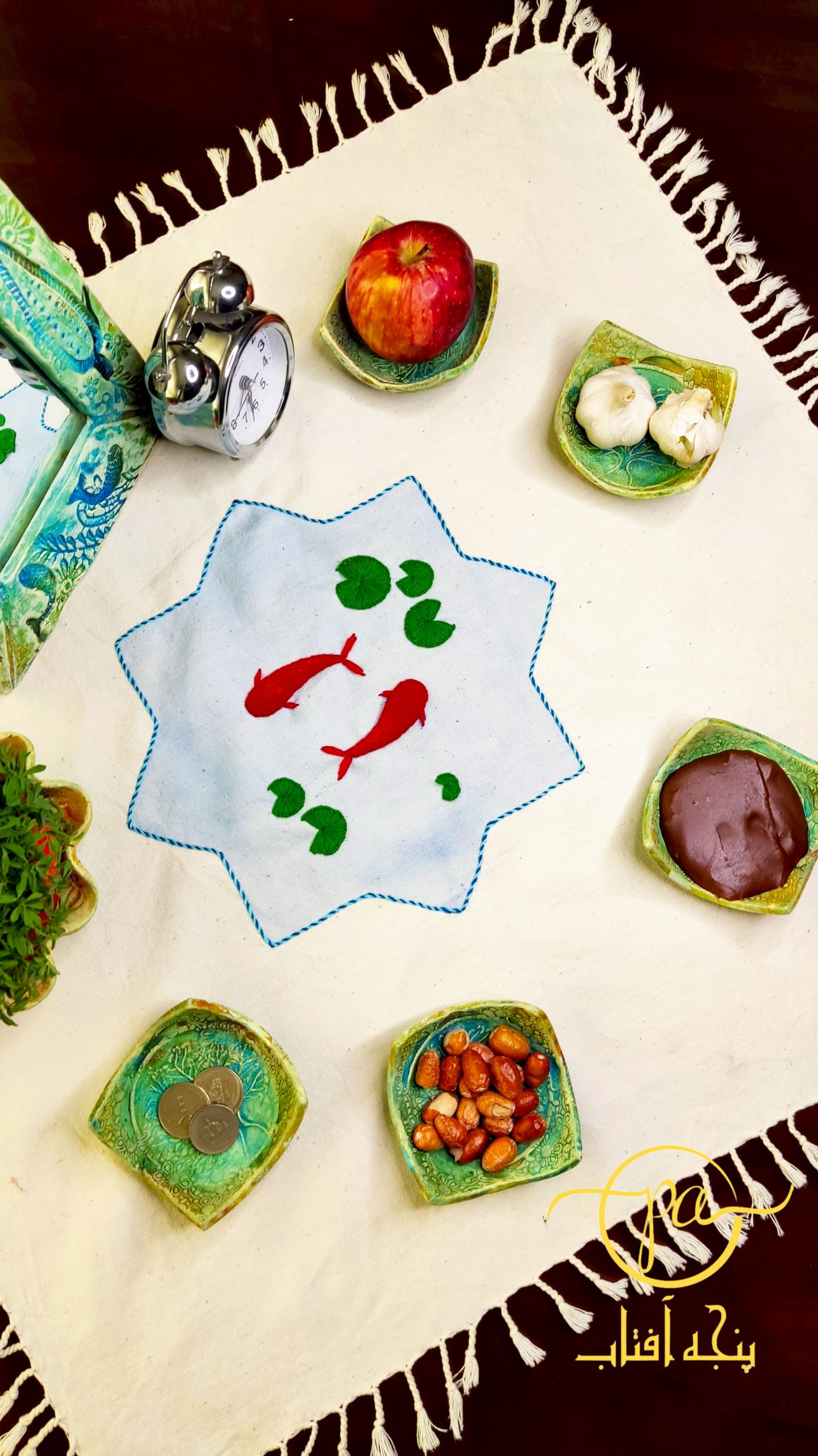 رومیزی ماهی گلدوزی شده
